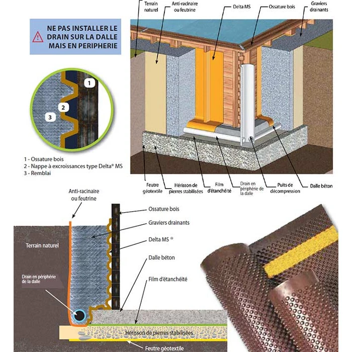 Attention, lors de l’installation à respecter le sens de pose. Les bulles doivent être contre la paroi en bois pour le laisser respirer.