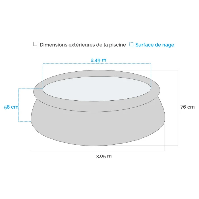 La structure de la piscine autoportante est idéale pour monter sa piscine rapidement. Il n’y a que le boudin à gonfler et remplir la piscine d’eau.