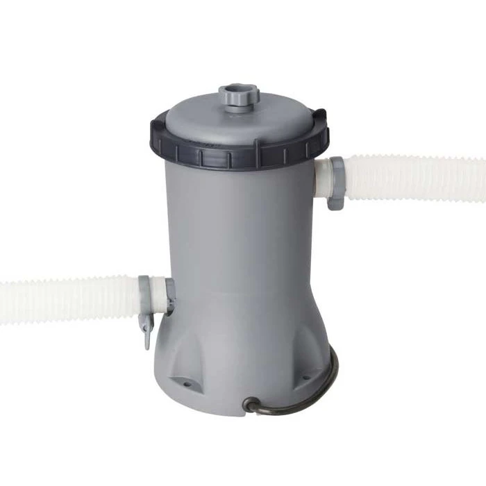 Pratique et complet, ce kit est composé d’une pompe de filtration (débit de 2,006L/h) à cartouche (II) qui assurera au bassin de conserver une eau propre et claire.
